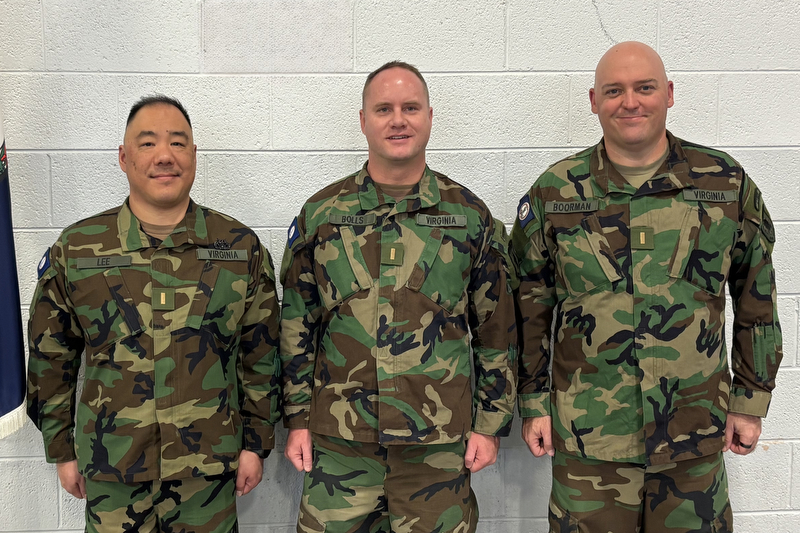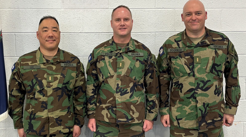 MANASSAS, Virginia – The Virginia Defense Force commissioned three new second lieutenants during a graduation ceremony Dec. 7, 2025, in Manassas, Virginia. Officer Candidates Michael Boorman, Ken Lee and David Bolls were promoted to second lieutenant after completing the six-month VDF Officer Candidate School program.